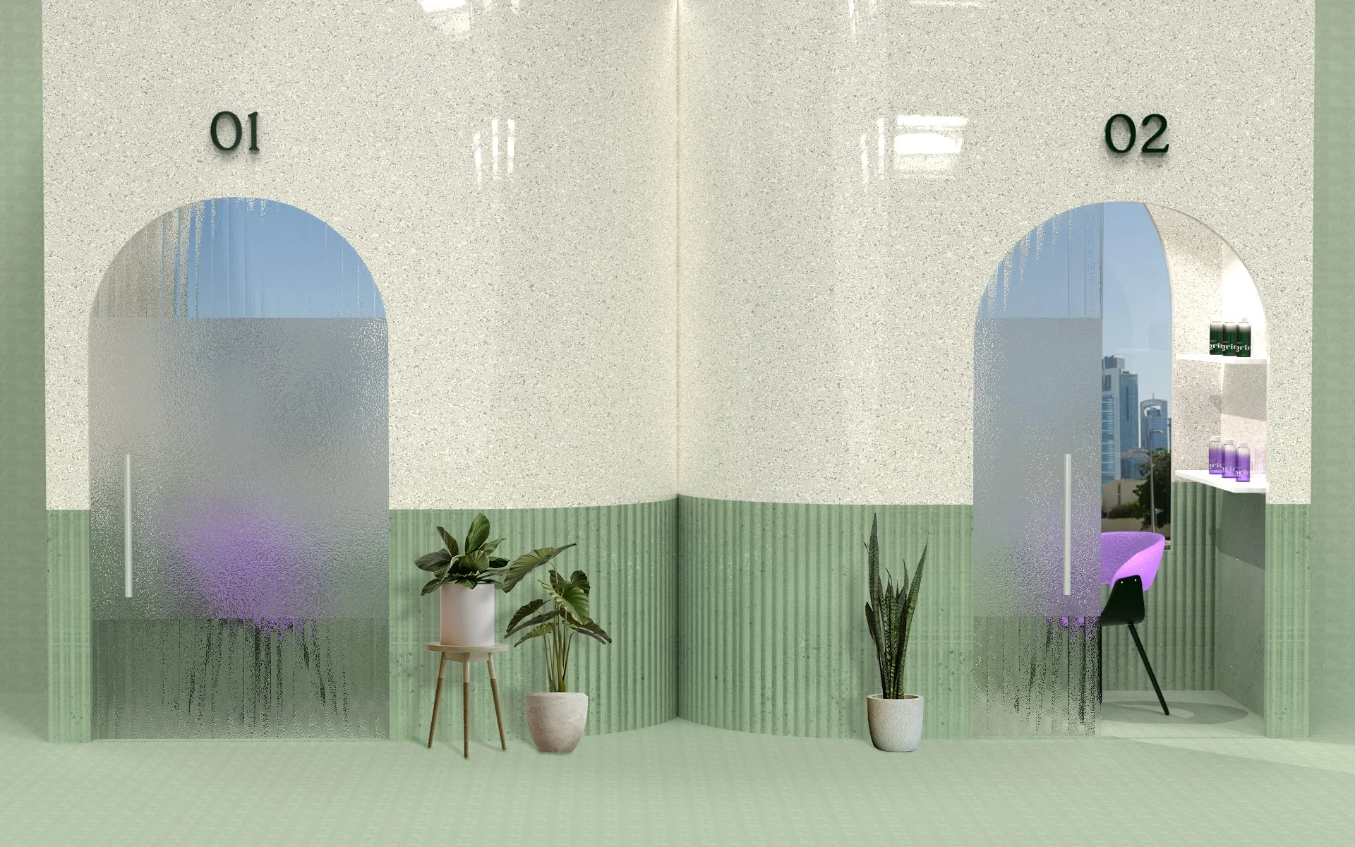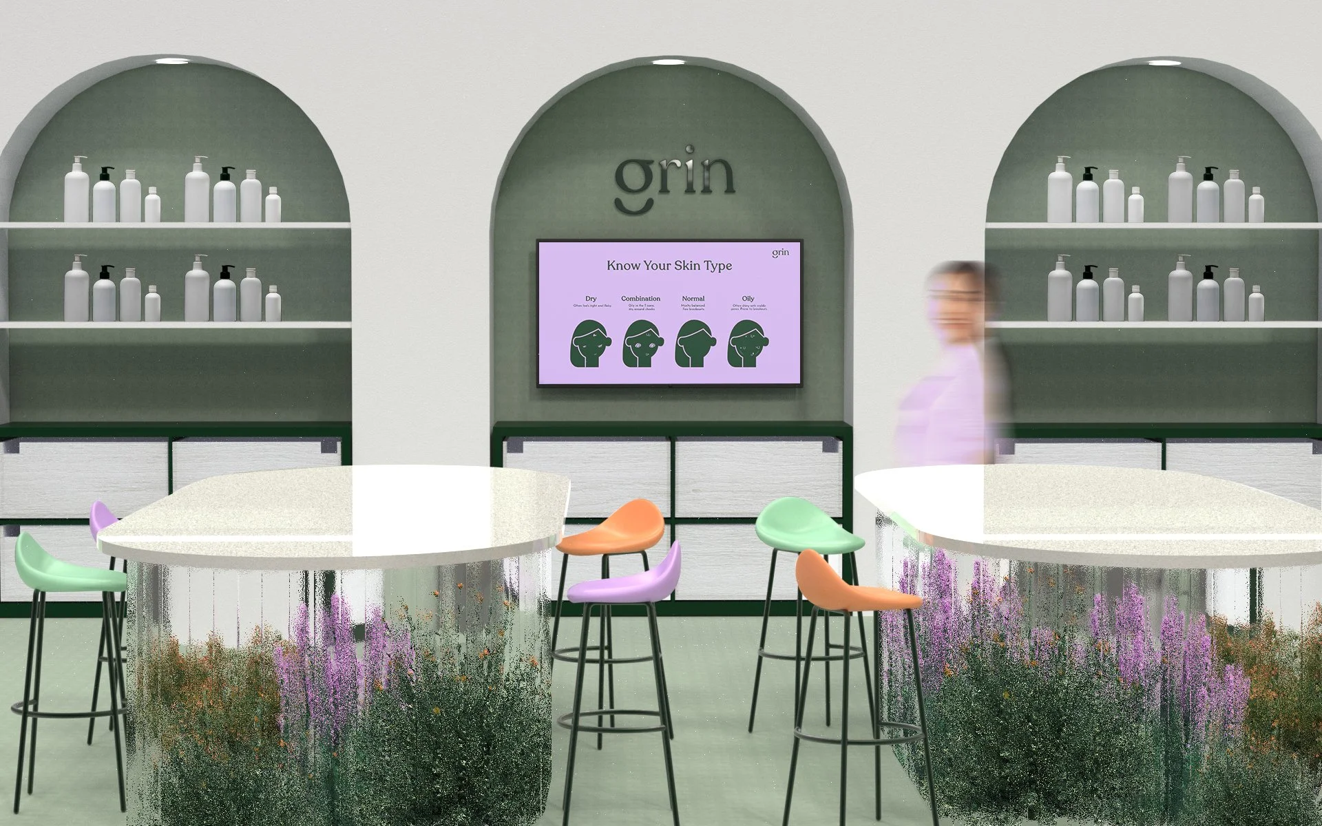 The area at the back of the retail store is designed to have several small rooms for skin consulting space. The brand will build a collaboration with a nearby dermatologist to offer skin diagnosis services in the retail space.